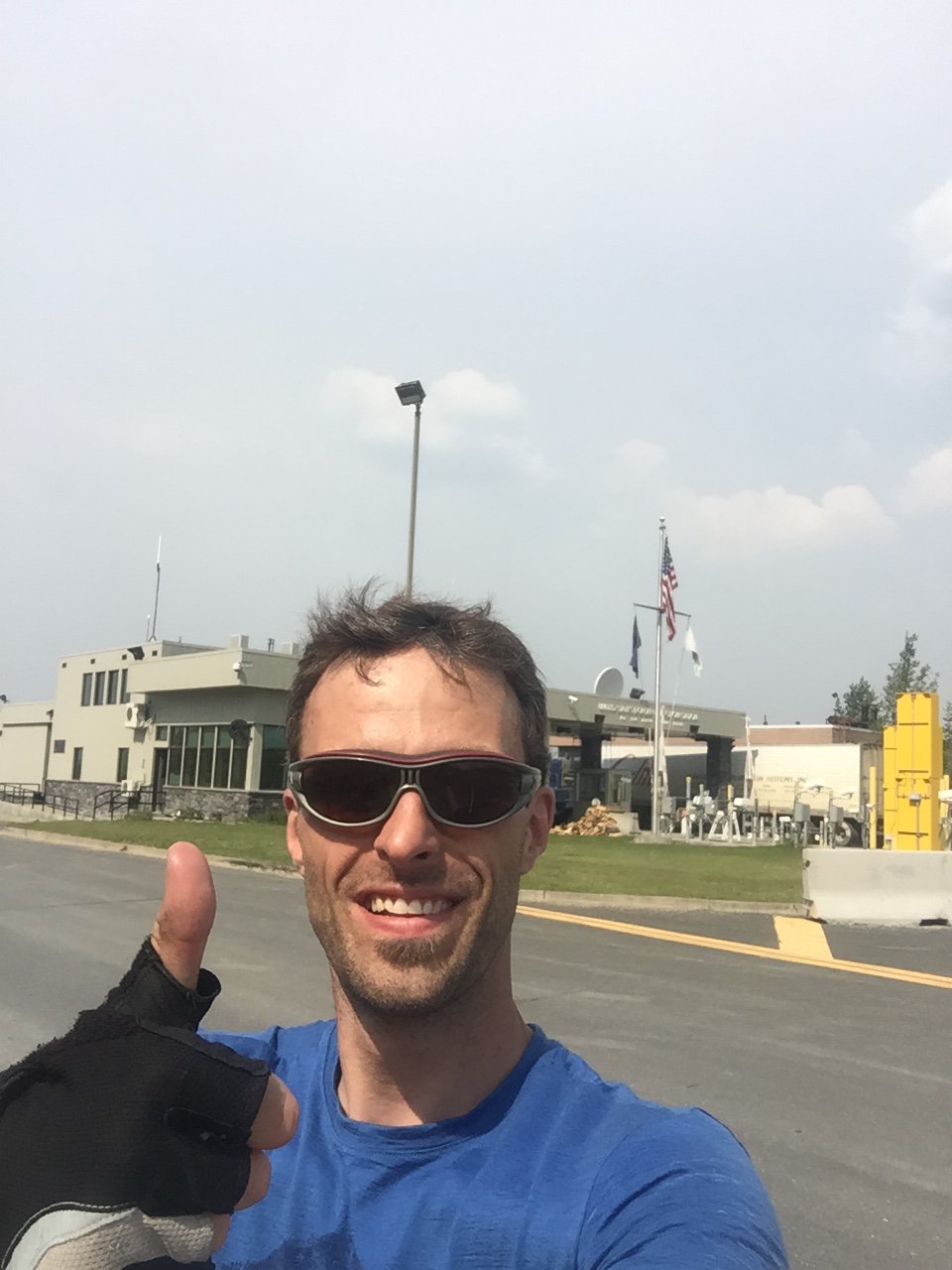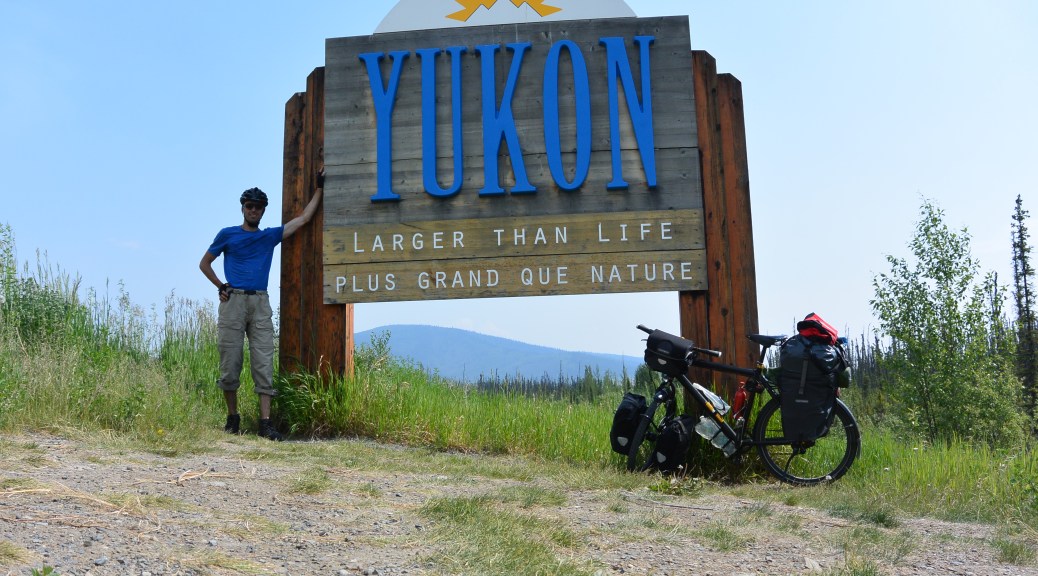 Ich fahre also über die US-Grenze und denke noch, wo bitte ist denn der kanadische Grenzposten, befinde ich mich in der Entmilitarisierten Zone, im Niemandsland, im Nirgendwo. Ich radle also 27km durch dieses Nichts, bis kurz vor Beaver Creek dann der kanadische Grenzposten ins Bild huscht. Die Grenz-Frau fragt mich einige Details meiner Reise, ob ich Firearms dabei habe und gibt mir schliesslich die maximale Aufenthaltsdauer von 6 Monaten PAM in meinen Pass. Der Rest ist schnell erzählt, ich stelle mein Zelt auf, duschen, waschen und gönne mir ein Fleisch-Znacht.