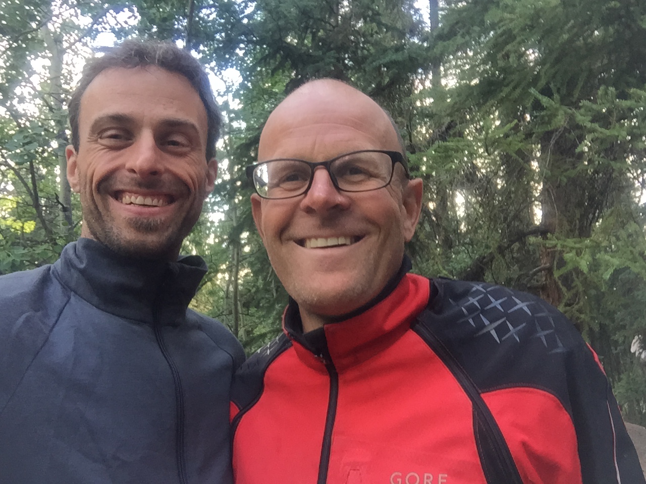Der Schlaf bis 08:00h hat gut getan. Ich merke die Anstrengung aber sehr deutlich. Ja 20 war mal, jetzt 36, graue Haare und Muskelkater. Ich habe Zeit und mache mir Kaffee. Mein Vis-a-Vis Nachbar sitzt auf dem Bank neben seinem Zelt und sieht dabei weder fit noch besonders zufrieden aus. Lustig, er hat dieselbe Jacke wie ich. Ich rufe ob er auch einen Kaffee haben möchte, den Brenner habe ich ja eh schon in Betrieb. Er lässt es sich nicht zweimal sagen, sitzt ab und fragt sehr schnell woher ich bin. Standardfrage, Standardantwort, from Switzerland.