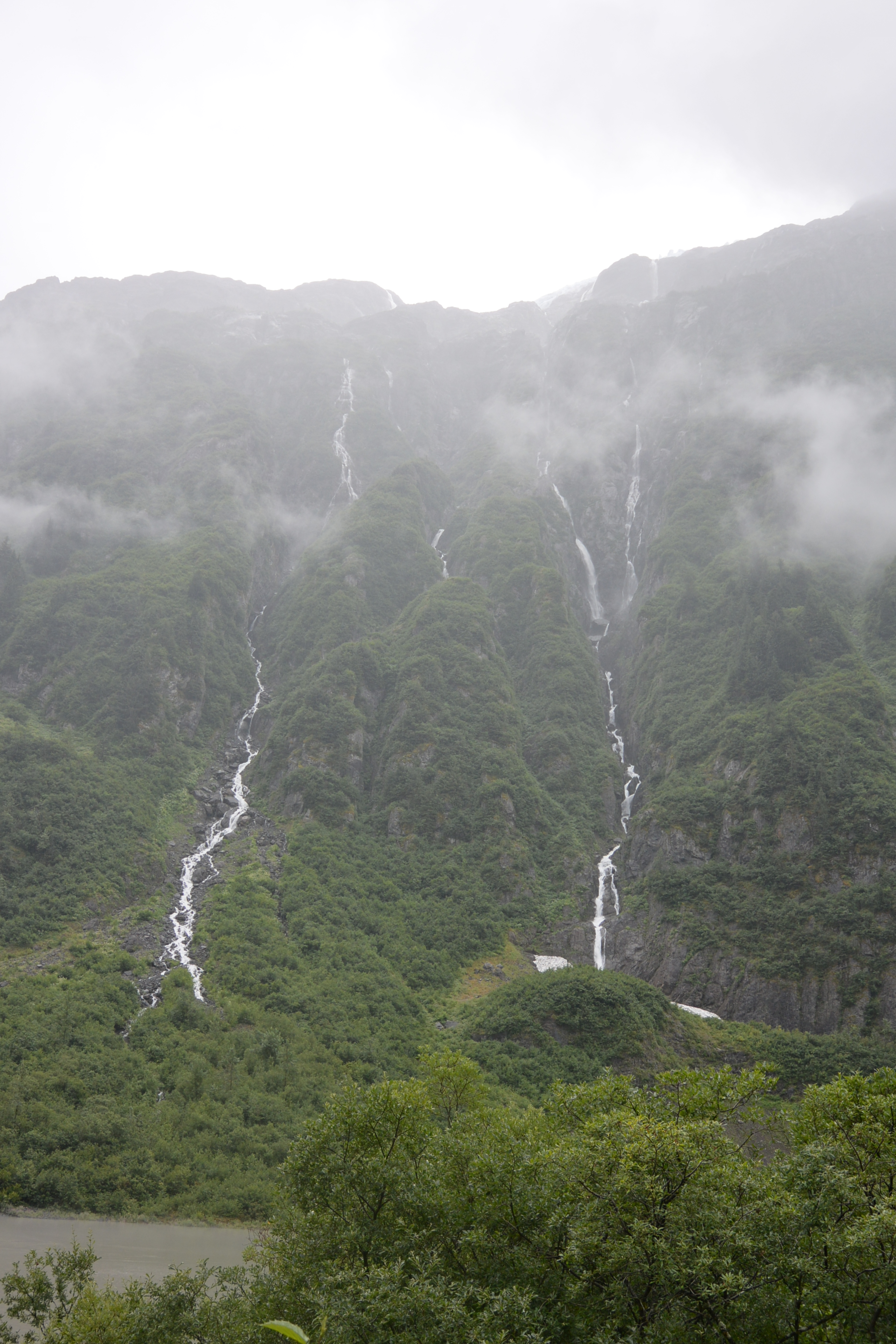Tja, da Stewart eine Sackgasse ist, muss man die 60km wohl oder übel wieder zurückradeln. Den Vormittag habe ich locker gestaltet, lange geschlafen, Internetseite aktualisiert, bisschen Musik gehört und habe ich vergessen zu erwähnen das es regnet. Das Zelt wird jetzt nass in den Sack verpackt und ich freue mich schon auf den Abend. Ein nasses Zelt ist was ganz feines. Gegen halb zwei bin ich dann los, hab mir aber vorher noch ein Donat mit Füllung geholt, eine Zuckerbombe für die Motivation im Regen. Ein bisschen Weltuntergangsstimmung, dunkel, grau, Nebelverhangen, aber keine verdammten Insekten. Das scheinen alles Mimösli’s zu sein. Kaum schlechtes Wetter bleiben wir lieber im Astloch oder wo auch immer. Mir kann es nur recht sein. An der Junction angekommen, komplett nass, ein Hungergefühl und es hat ein Restaurant. Schnell rein, raus aus dem nassen Zeug, her mit dem Kaffee und dem Burger. Mit etwas warmem im Bauch sieht die Welt gleich viel besser aus. Der Regen hat aufgehört, das Zelt zum trocknen aufgestellt, der Tag endet mit einem Lächeln auf dem Gesicht.