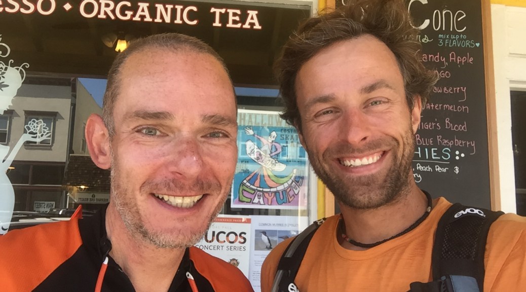 Ich fahre los und werde unterwegs von einem Deutschen eingeholt, der auch auf dem selben Campground war. Wir fahren zusammen nach Cayucos und trinken dort einen Kaffee. Er ist mit sehr wenig Gepäck und einem Rennrad unterwegs. Als er dann von seinem Job erzählt wird es richtig spannend. Er arbeitet als Architekt bei einer sehr kleinen Firma in Deutschland. Die Firma designet Fernsehstudios für Produktionen wie the Voice oder Germany’s next top Modell. Per Arne hat schon mit Dieter Bohlen und Heidi Klum zu tun gehabt. Spannend und sehr interessant ihm zuzuhören.